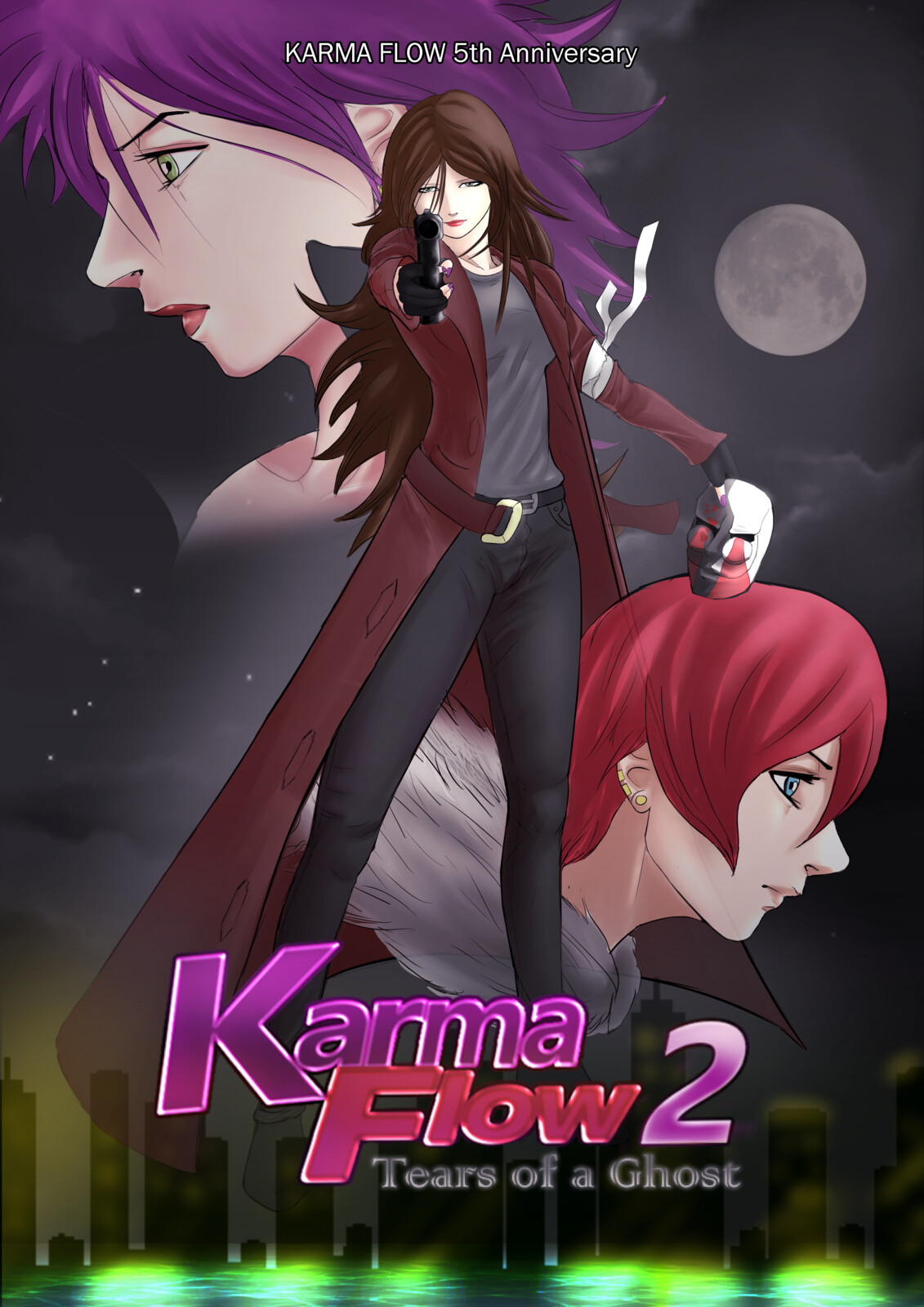 I decided to celebrate this day by drawing this artwork showing characters from Karma Flow 2 - Tears of a Ghost.