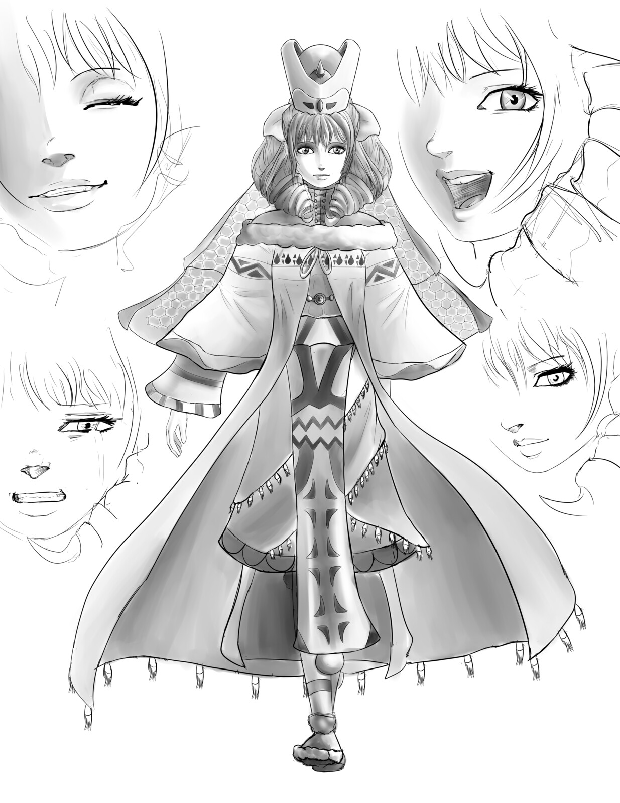 A sketched Concept Art I did for a friend. She's the Last Valepha of Fend from the game Resolem.