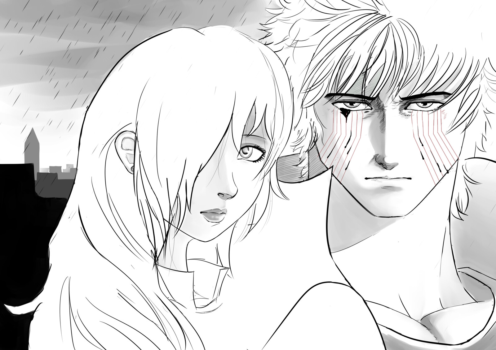 A quick sketch starring two of my characters for a game I would like to make, someday.